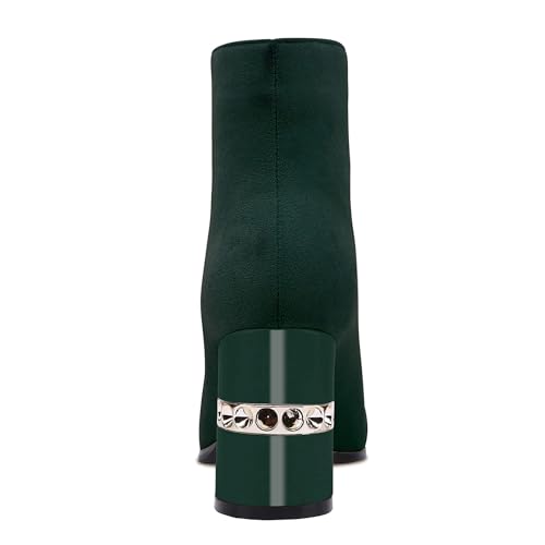 XINIUNIU Women's Ankle Boots Block Chunky Heels Booties Metal Square Toe Suede Front Zipper 3 Inch Short Boot Dress 5
