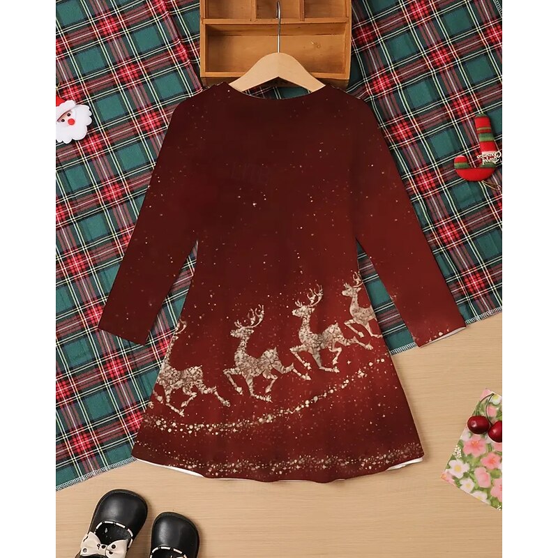 More information about Christmas Girls' 3D Elk Snowflake Dress Long Sleeve Summer Spring Vacation Daily Holiday Princess Beautiful Sweet Kids 4-12 Years Casual Dress A Line Dress Knee-length Regular Fit