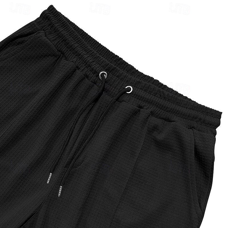 More information about Men's Waffle Trousers Slacks Baggy Pants Waffle Pants Drawstring Front Pocket Plain Comfort Full Length Outdoor Home Party Vacation Fashion Blue 1# Black Stretchy