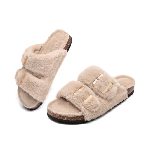 Rainlin Fuzzy Slippers Women Comfort Fluffy Slides Open Toe Indoor House Shoes 6