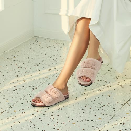 Rainlin Fuzzy Slippers Women Comfort Fluffy Slides Open Toe Indoor House Shoes 4