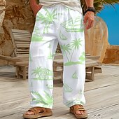 More information about Men's Coconut Tree Tropical Plants Trousers Baggy Pants Casual Pants Mid Waist Hawaiian Outdoor Vacation Home Elastic Drawstring Waist Linen-Like Pants with Pockets Spring Fall 3D Print Blue Orange