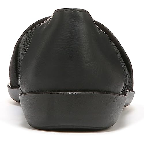 • Fabric knit with stretch gore strap, round toe, slip-on fit, and faux leather detail at the heel