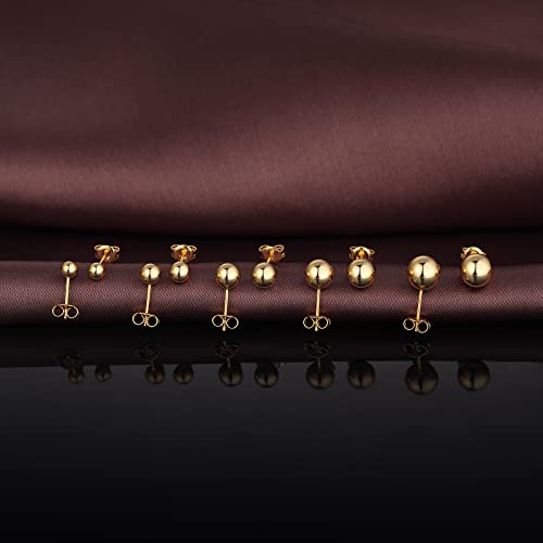 JiayangJY 18K Gold Plated Sterling Silver Ball Stud Earrings for Women Men, Round High Polished Balls Studs Hypoallergenic, Butterfly Back (4mm/ 5mm/ 6mm/ 7mm/ 8mm) 3