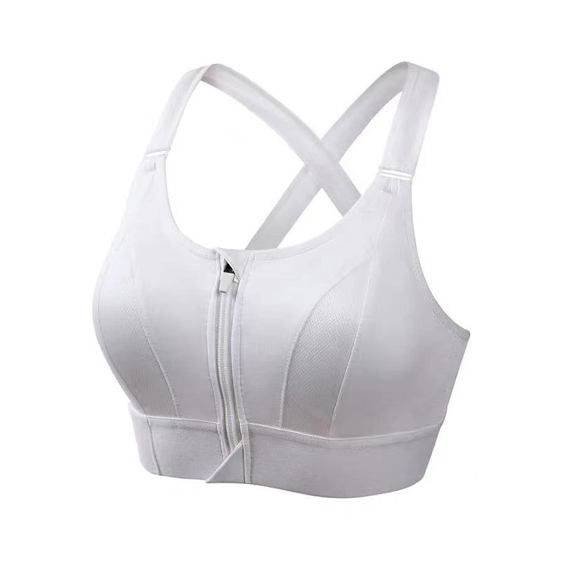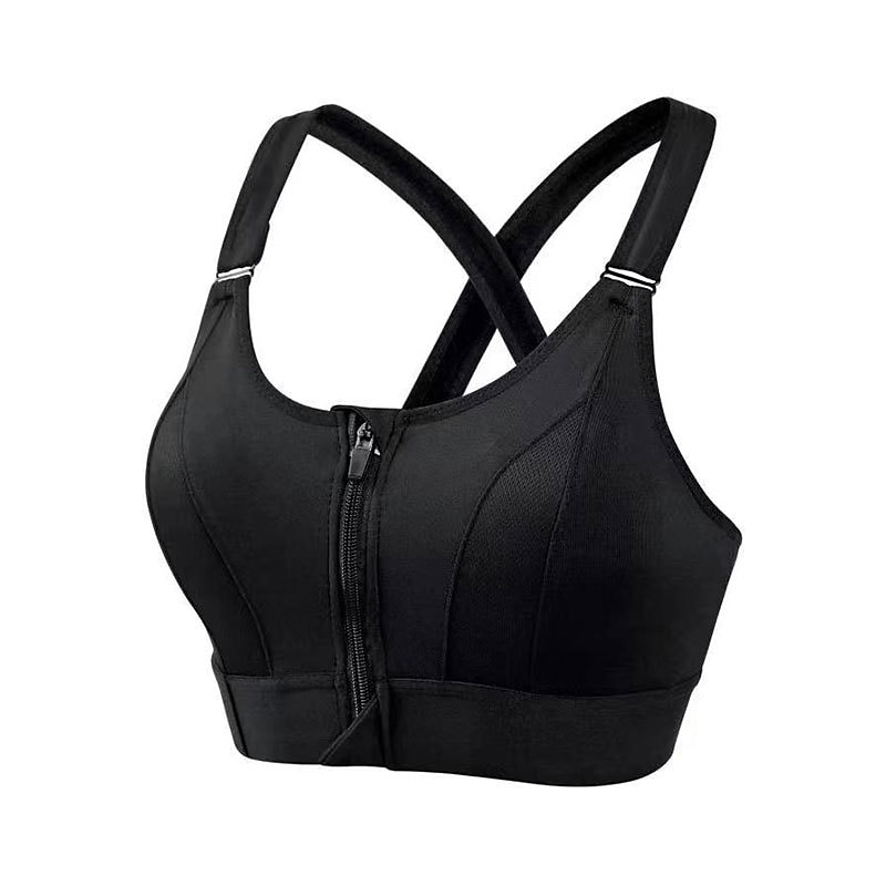 Highlights [Fabric:] This high-support sports bra is made from a blend of breathable polyester and spandex, which offers excellent moisture-wicking and quick-dry properties to ensure you stay comfortable during workouts. Its stretchy nature provides optimal comfort and flexibility for various activities. [Fit and Design:] Featuring a sleek and modern design, this bra is perfect for active lifestyles. It has a slim fit with a scoop neckline and a padded shelf for enhanced support and comfort. The adjustable straps cross at the back in a stylish racerback style, minimizing movement and providing added stability. The front zip closure not only adds a touch of sporty flair but also makes it easy to wear and remove, enhancing convenience and functionality. [Design Highlights:] The standout features of this bra include its fashionable cross-back design and the front zip, which allow for a sophisticated look while ensuring high support during intense physical activities. Its solid color pattern and wide, supportive straps blend functionality with style. [Occasions:] This bra is ideal for various activities such as yoga, running, gym workouts, and fitness sessions. Its lightweight and shockproof features make it a versatile choice for a range of sports and fitness endeavors, providing both practicality and style. [Size Range:] Available in sizes S, M, L, XL, and XXL, this sports bra caters to a wide range of body types, ensuring a suitable fit for most women.