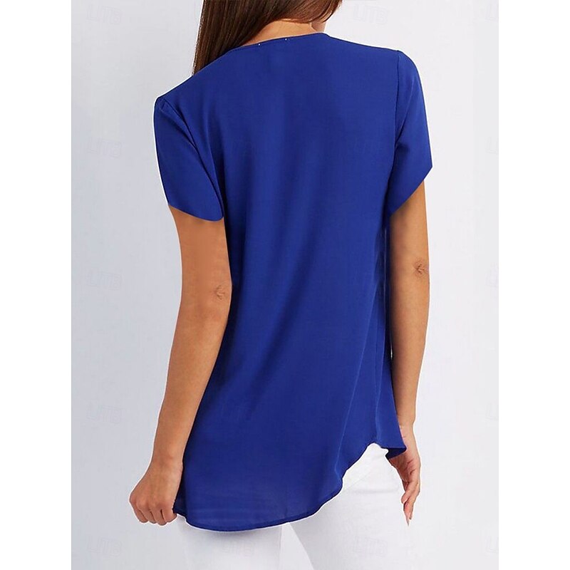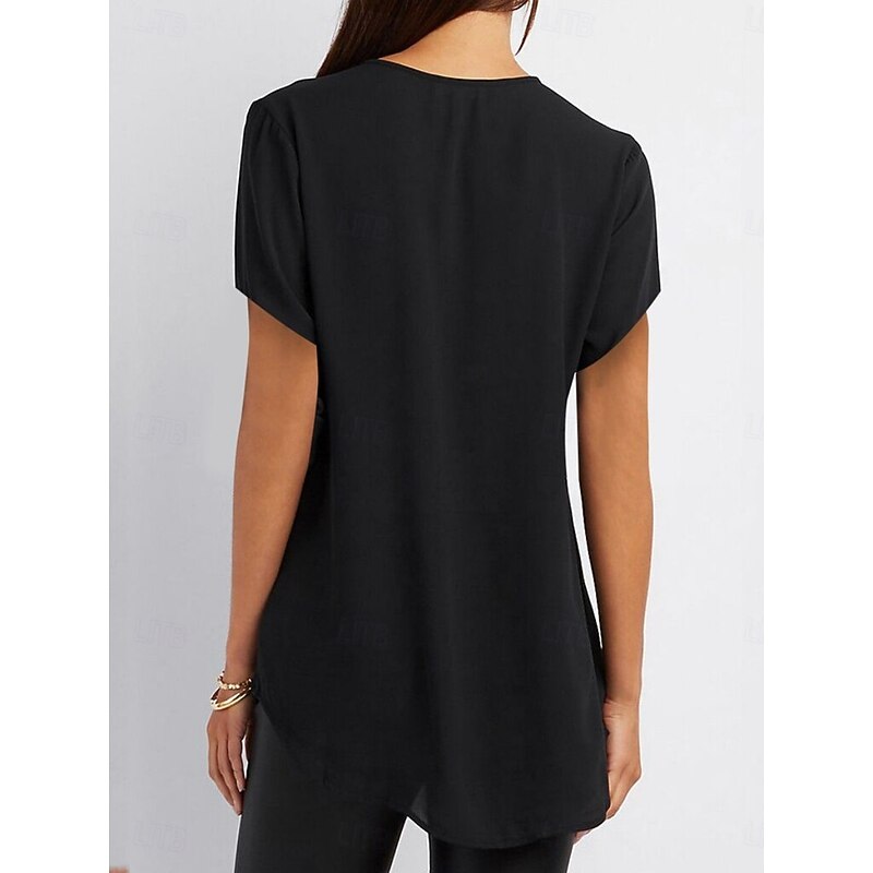 More information about Women's T Shirt Solid Color Plain Fashion Modern Casual Short Sleeve V Neck Regular Tops Daily Weekend Zipper Black White Pink Wine Royal Blue Summer