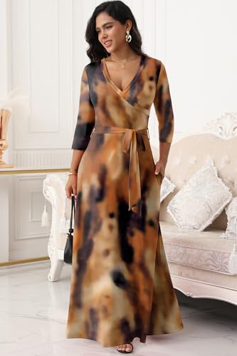 More information about FANDEE Maxi Dress for Women Elegent 3/4 Sleeve V Neck Casual Dresses Classy High Waist Wedding Guest Lomg Dress