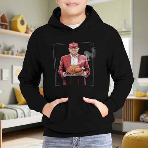 HOT ! Kids Funny President Serving Roasted Turkey Boys Girls Lightweight Kangaroo Pocket Fleece Hoodies