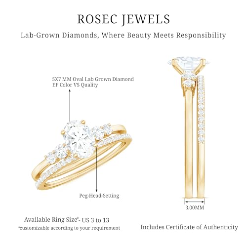 Certified Lab Grown Diamond Bridal Ring Set, Ef-Vs Quality, 5X7mm Oval Diamond Engagement Ring with Wedding Band - Ready To Gift 2
