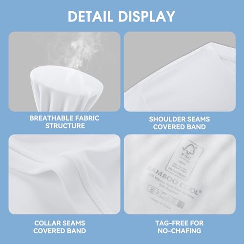 Fabric type: 50% Viscose Made from Bamboo, 50% PolyesterCare instructions: Machine WashOrigin: ImportedClosure type: Pull OnMoisture Wicking: Our fabric actively pulls sweat away from your body, while ultra-breathable airflow keeps you cooler than cotton. Lighter, drier, and more breathable—stay fresh no matter how busy your day gets.Built to Last: Stronger than cotton, crafted with a reinforced polyester-blend fabric, these mens undershirts resist shrinking, fading, and wrinkles even after repeated washes.Regular Fit: Designed with a regular fit and added stretch, these white t shirts move with you. No tags. No itch. Just smooth seams and lasting comfort.Perfect for Any Occasion: Available in several sizes, our undershirts adapt to your shape with stretchy sleeves for a perfect fit—size up for a looser feel. Ideal for work, home, or travel, they keep you cushy all day.Easy Care: Machine wash cold, skip the bleach, and air dry. This bamboo-polyester blend stays soft, anti-wrinkle, and keeps its shape wash after wash. Perfect for everyday use. excellent materials and excellent craftsmanship ensure long-lasting durability.