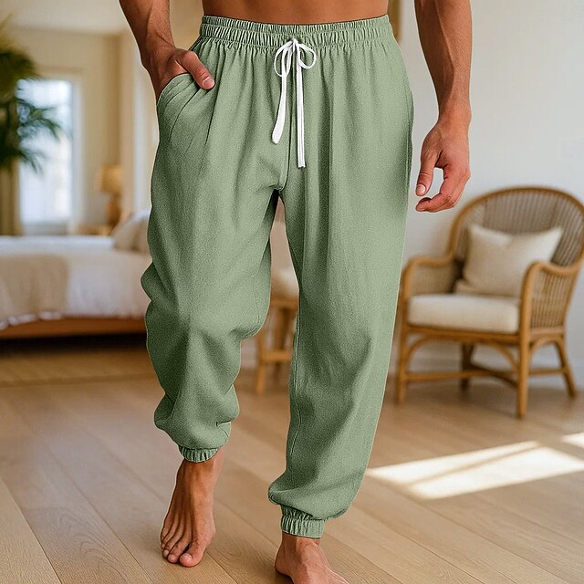 More information about Men's Linen Pants Trousers Summer Pants Beach Pants Drawstring Elastic Waist Elastic Cuff Plain Comfort Breathable Full Length Casual Daily Holiday Vacation Fashion Navy Blue Green Micro-elastic