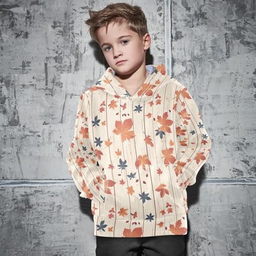 HOT ! KLL Autumn Leaf on Old White Wooden Toddlers and Girls' Sweatshirts Sweater Long Sleeve Hooded Pullover Shirts Kangaroo