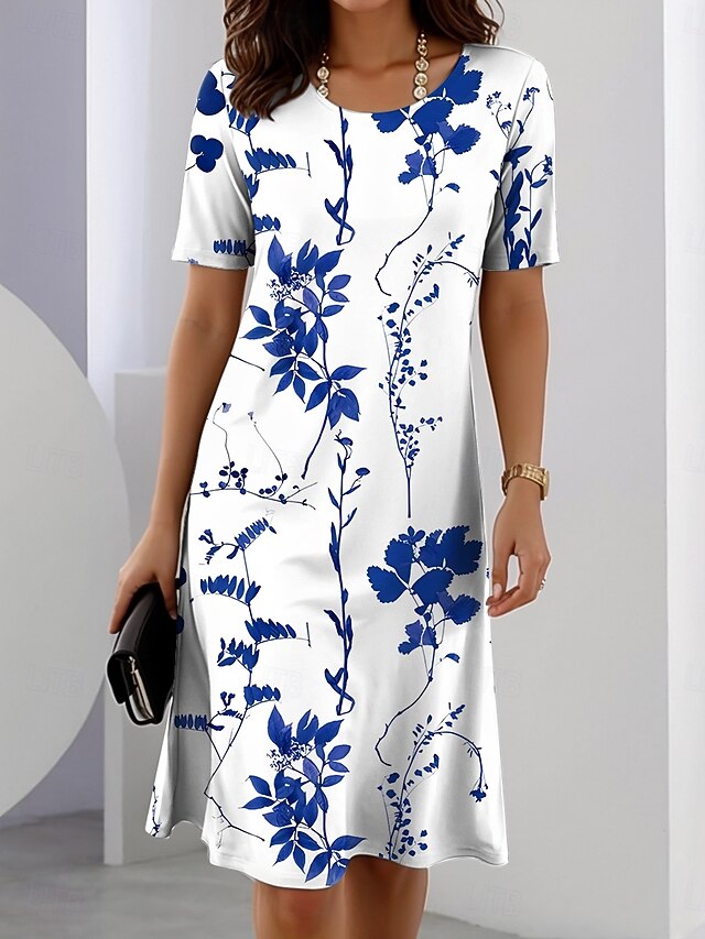 More information about Women's Elegant Party Evening Midi Dress Crew Neck Short Sleeve A Line Dress Summer Dress Casual Daily Regular Fit Floral Graphic Red Blue Purple Green Summer Spring