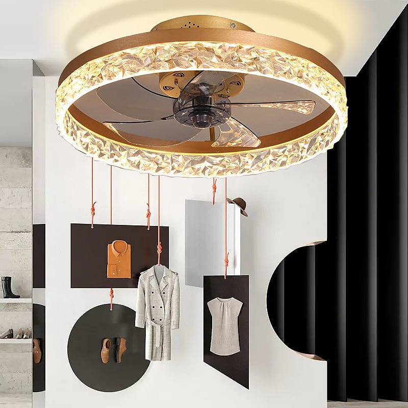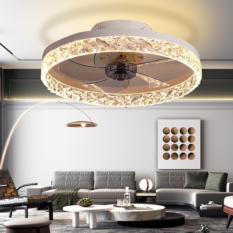 Ceiling Fan with Lights 19.5" Dimmable LED 3 Color 6 Speeds Timing Reversible Blades with Remote Control, Household Fan Chandelier, indoor Low Profile Flush Mount Ceiling Fan 17