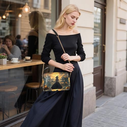 HOT ! Witch Halloween Scary Moon Crossbody Bags for Women, Small PU Leather Crossbody Purses and Handbags for Shopping Travel