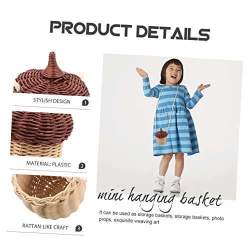 Beaupretty Mini Acorn Shaped Rattan Basket Crossbody Bag Woven Storage Purse for Travel Shopping Seaside Use 3