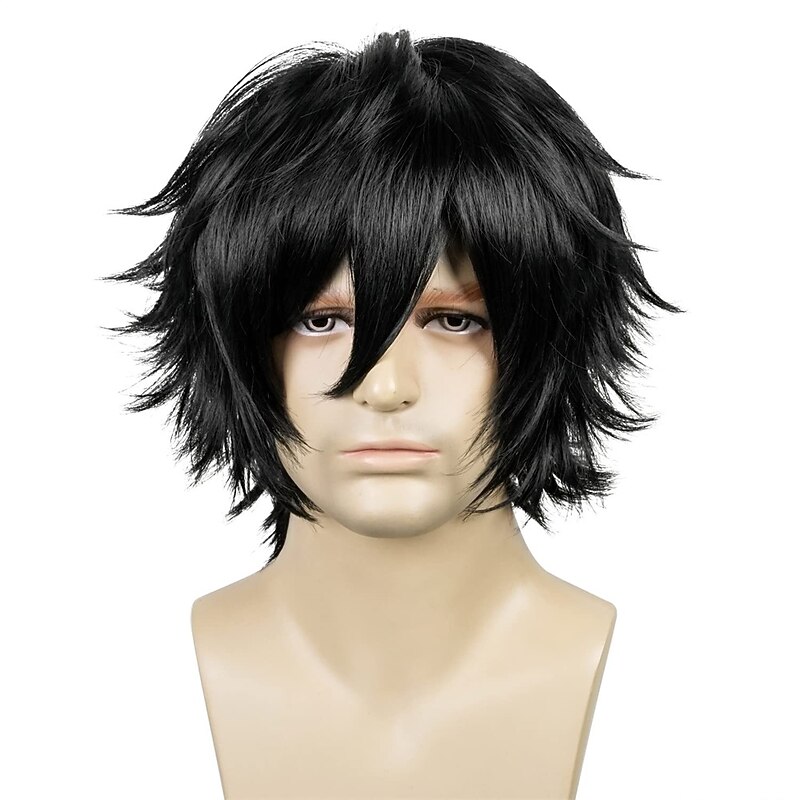 Unisex Anime Short Black and White Cosplay Wig With Bangs Heat Resistant Hair for Party Carnival Costume 31