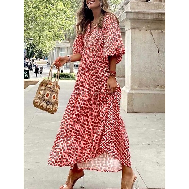 More information about Women's Geometric Print V Neck Lantern Sleeve Maxi Dress Casual Daily Vacation 3/4 Length Sleeve Summer Spring