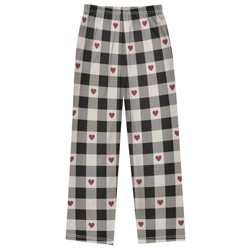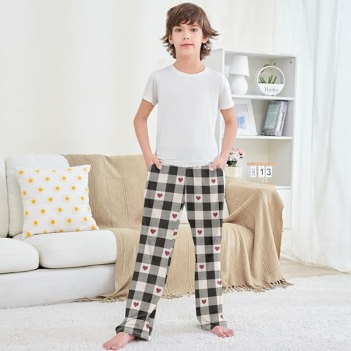 Boy's Pj Pants Heart Gingham Plaid Lounge Bottoms Elastic Waist Kids Joggers with Pockets Size 6-14 6