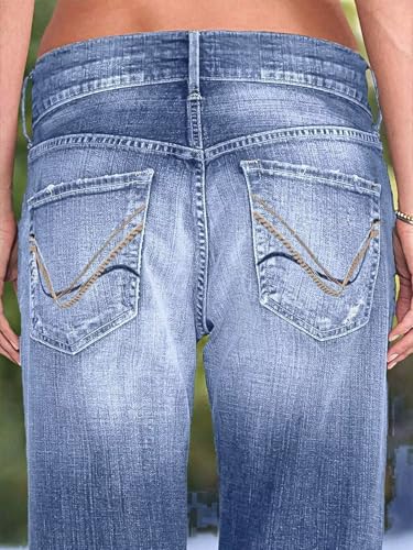 Flamingals Women's Low Rise Straight Leg Jeans Stretchy Ripped Raw Hem Casual Denim Jeans 4