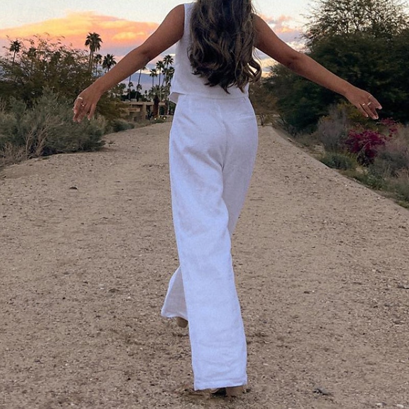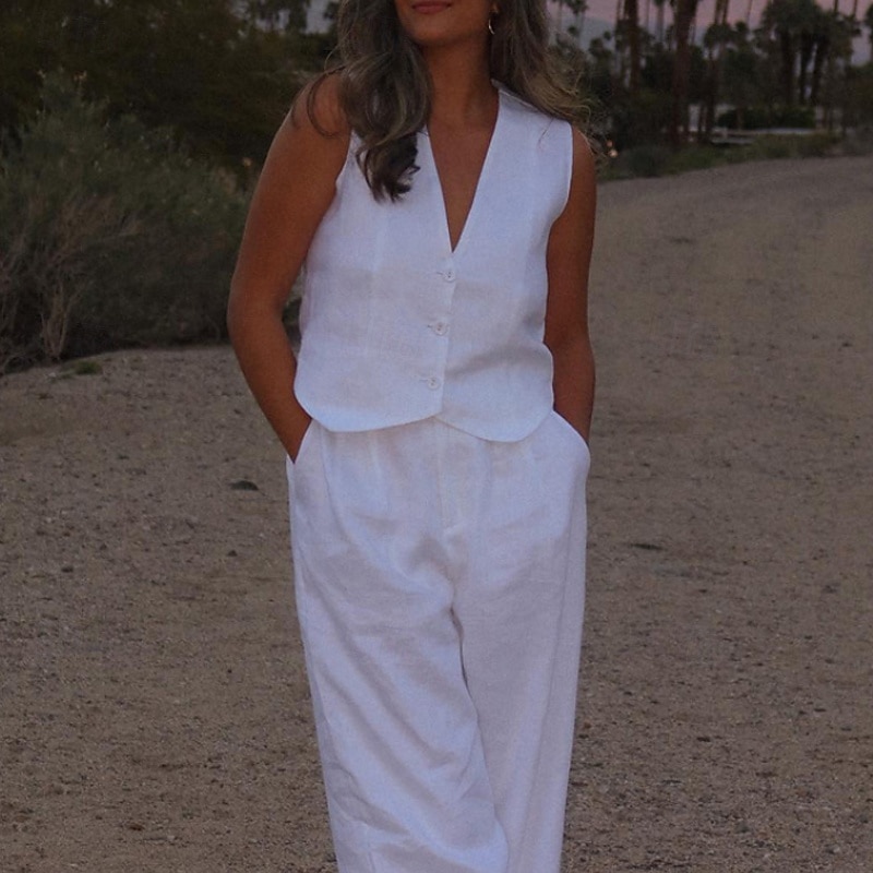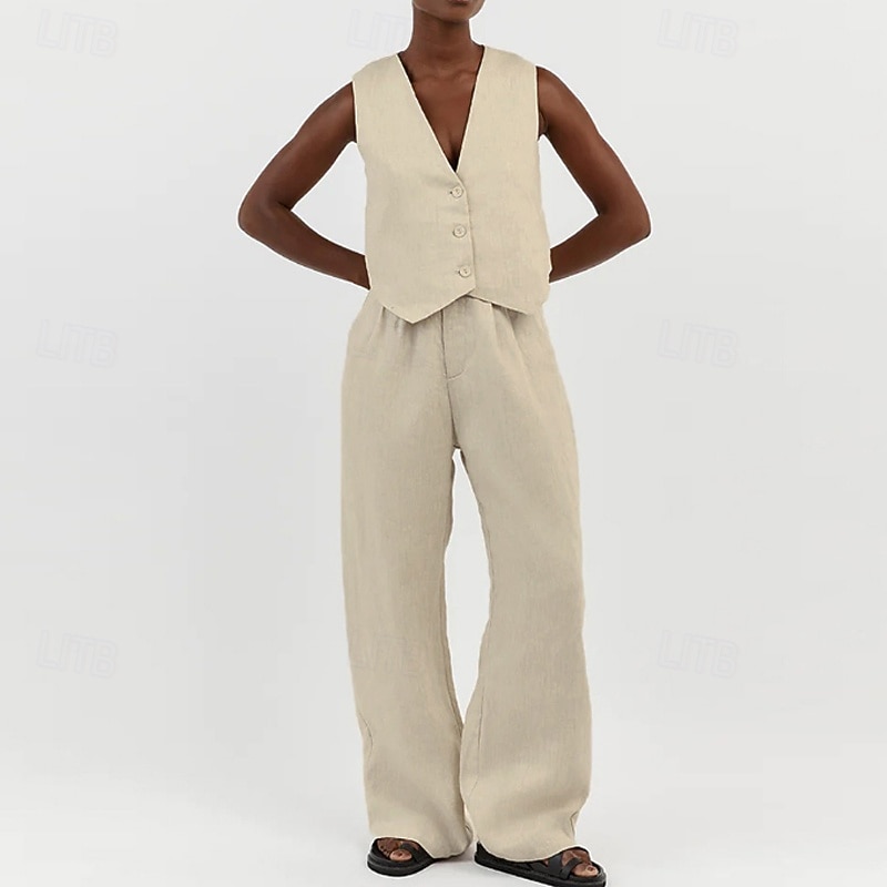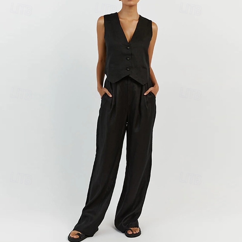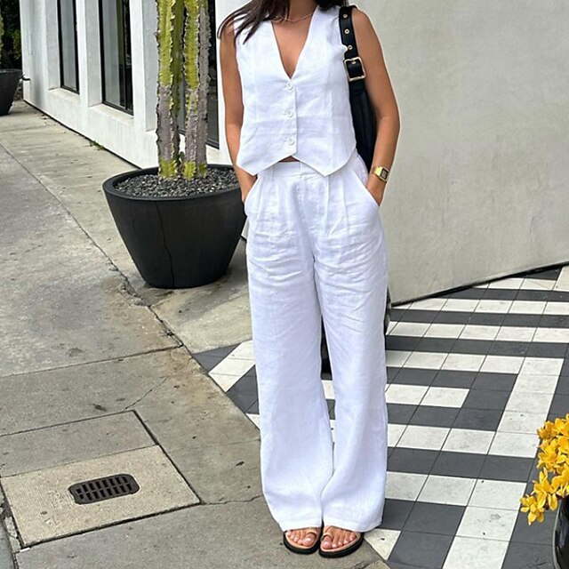 More information about Women's Active Fashion Blouse Pants Sets Sleeveless V Neck Solid Color Dubbele Rij Knopen Daily Casual Daily Black White Pink Summer Regular Fit