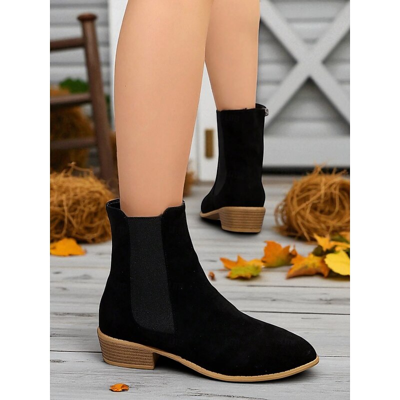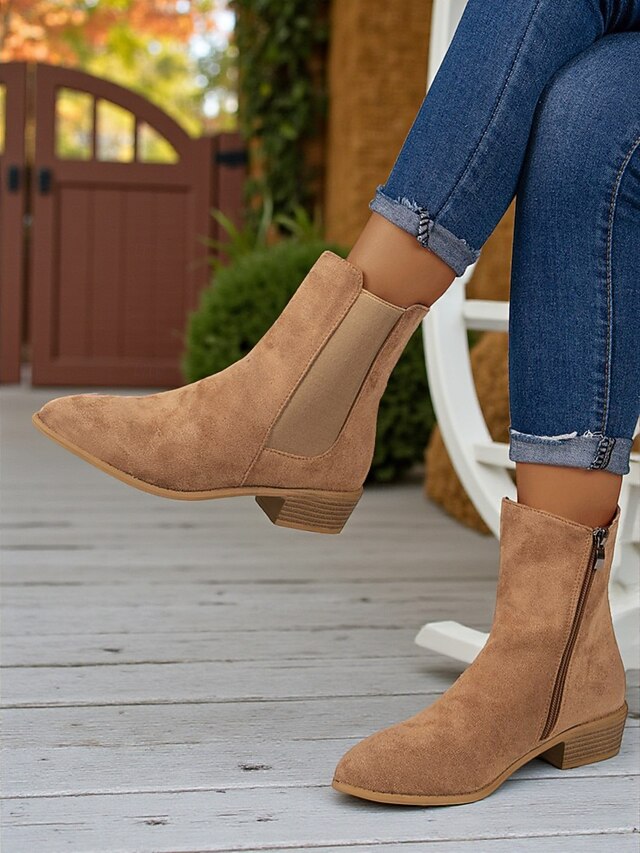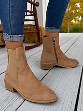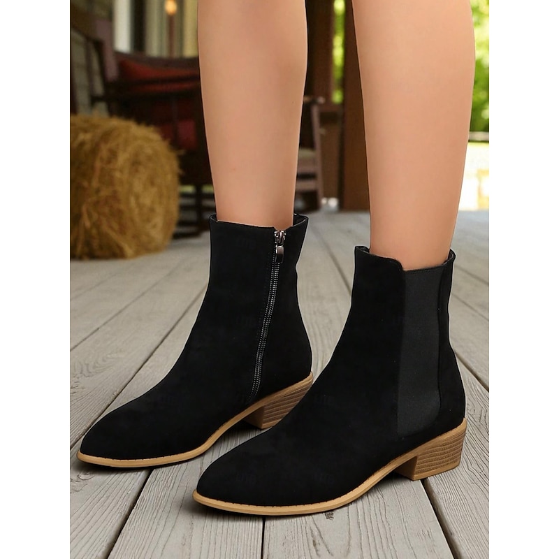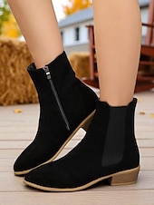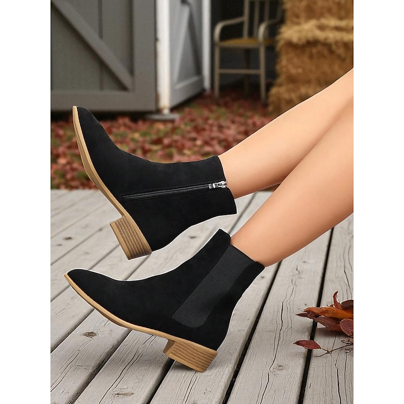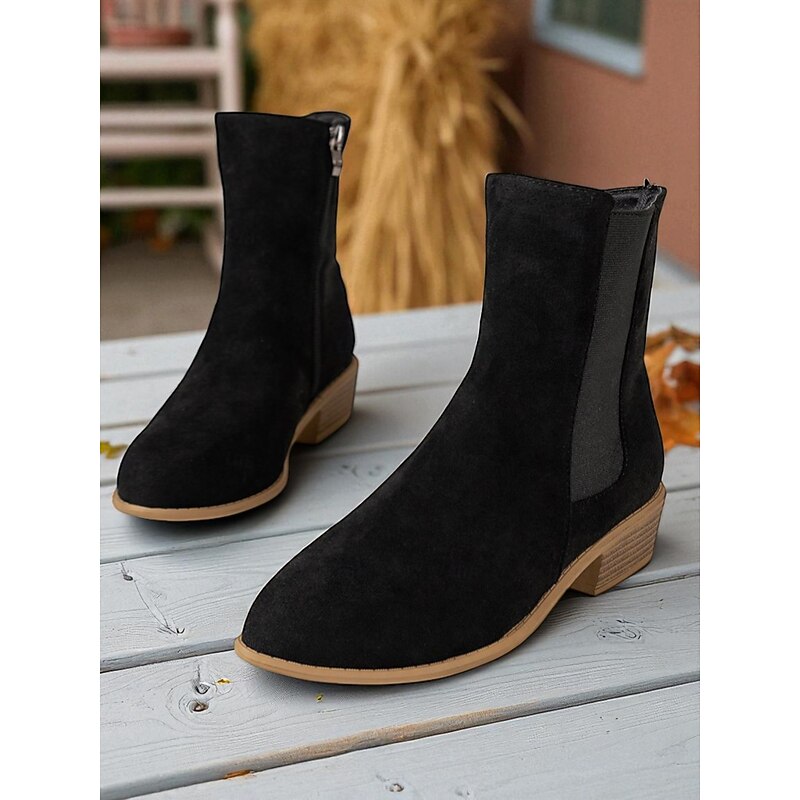 HOT ! Women's Faux Suede Ankle Boots – Side Zipper and Elastic Panel, Low Heel Chelsea Boots for Autumn Walks, Shopping and Casual Outings