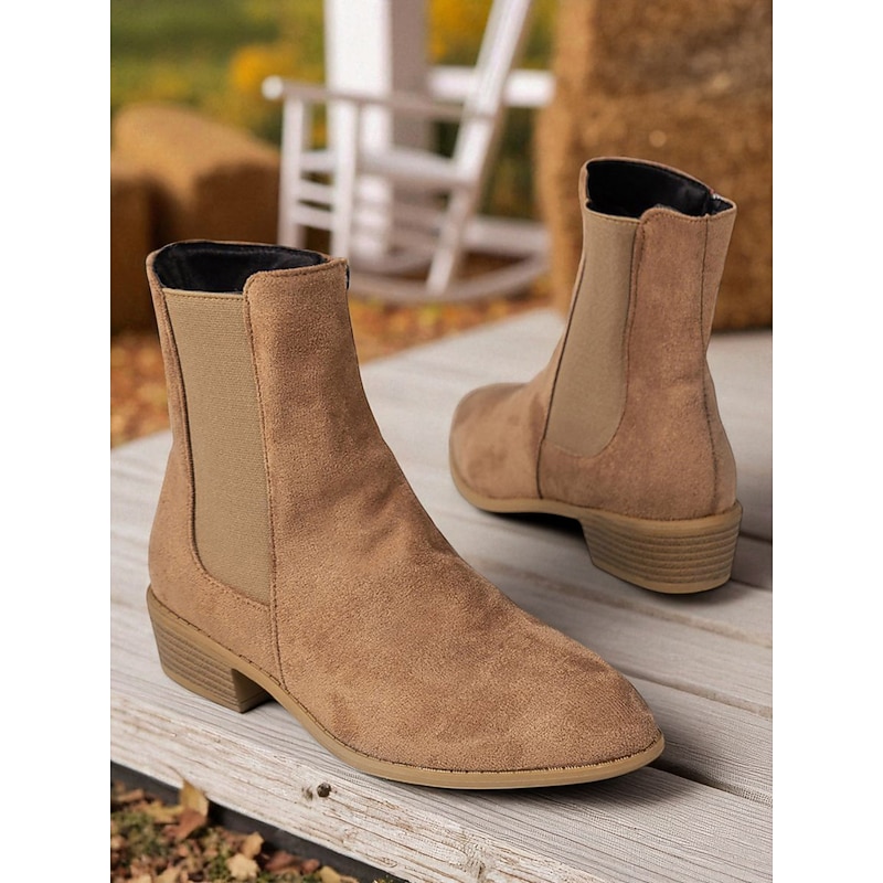 Women's Faux Suede Ankle Boots – Side Zipper and Elastic Panel, Low Heel Chelsea Boots for Autumn Walks, Shopping and Casual Outings 1