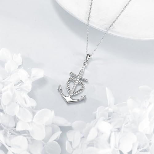 Anchor Necklace Sterling Silver Faith Hope Charity Pendant Heart Cross Anchor Jewelry Birthday Gifts for Women Men