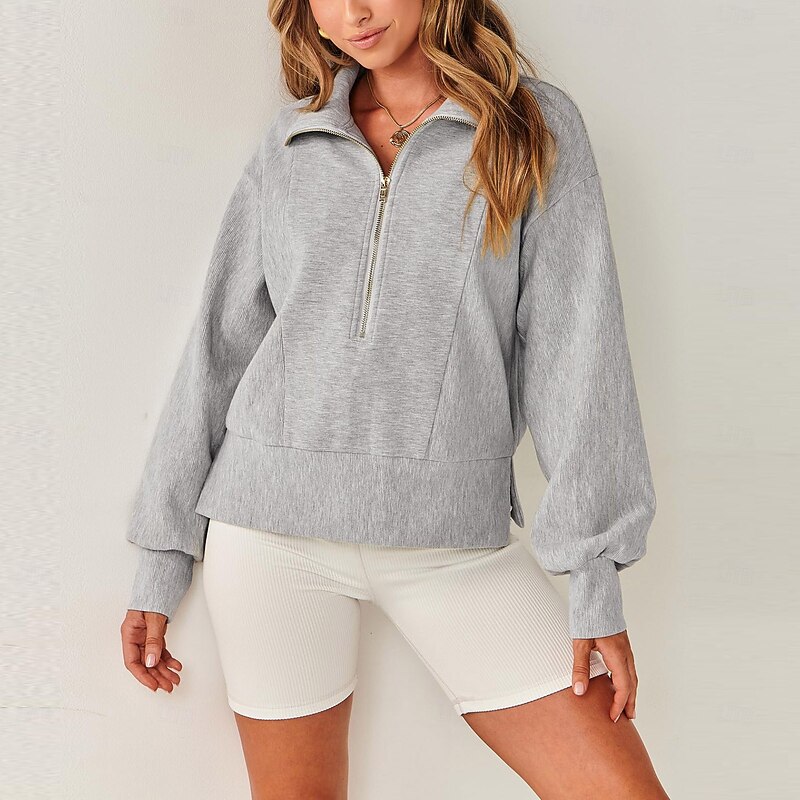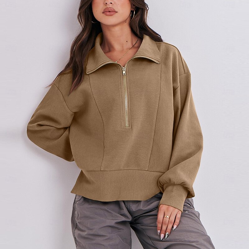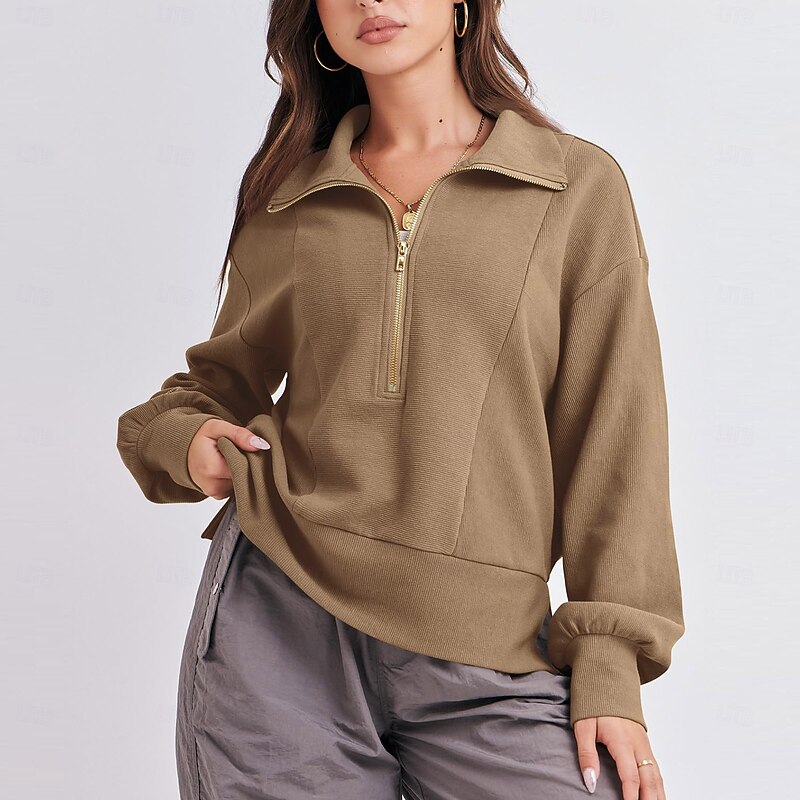 Why Choose Women's Texture Sweatshirt Texture Blouse Pullover Sweatshirt Plain Streetwear Casual Comfy Long Sleeve V Neck Regular Tops Street Holiday Going out Quarter Zip Black Khaki Gray Fall?