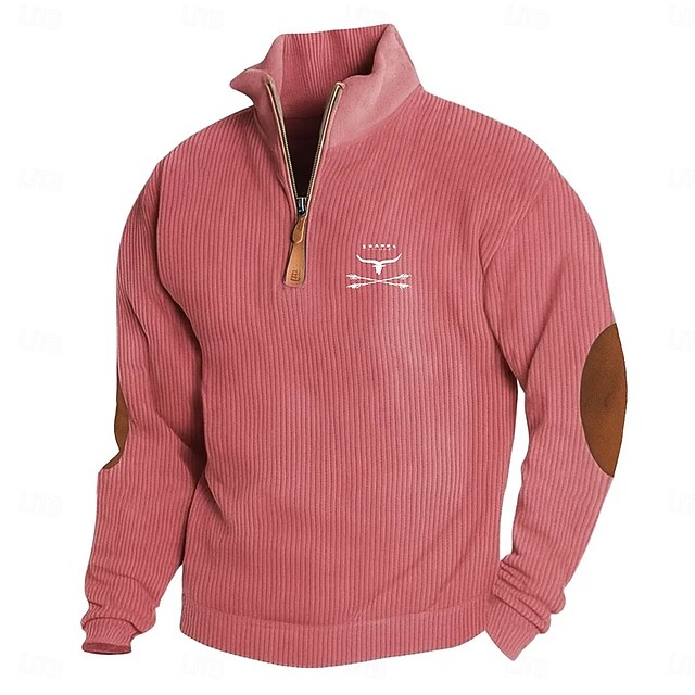 More information about Men's Sweatshirt Corduroy Pullover Hoodie Sweatshirt Pullover Black Pink Army Green Navy Blue Khaki Standing Collar Half Zip Plain Patchwork Sports & Outdoor Casual Daily Streetwear Cool Sportswear