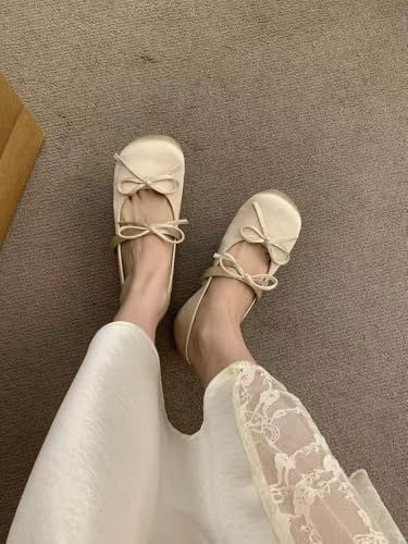 More information about ZQW Women's Cute Mary Jane Shoes Round Toe Bow Flat Shoes Gingham Checkered Kawaii Lightweight Comfortable Retro Style