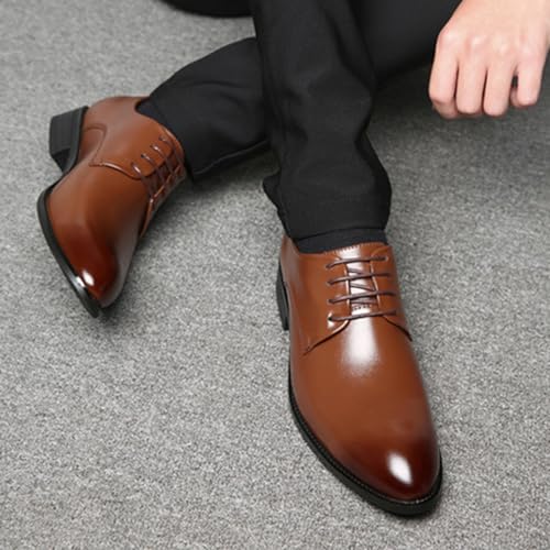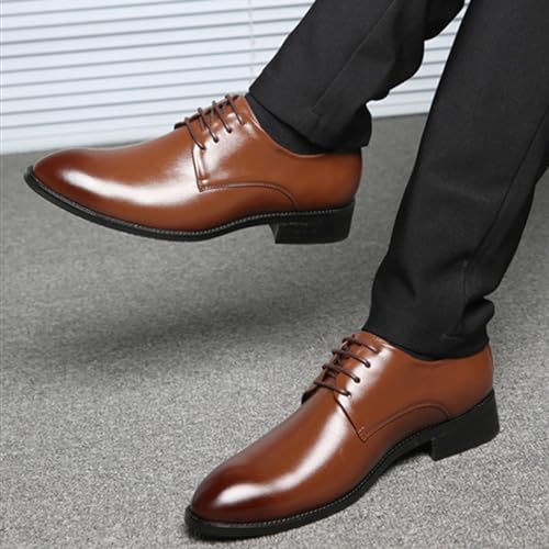 Men's Leather Shoes, Lace-Up Soft Bottom Business Oxford Formal Low Top Gentleman Large Size Office Work Comfortable Breathable Wedding Shoes, 40 EU,Brown 6