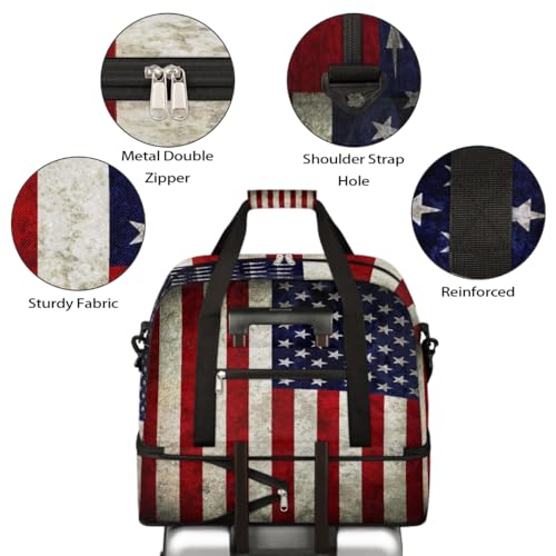 Large Capacity Folding Travel Bag Lightweight Carry On Weekender Overnight Shoulder Bag Expandable American Flag Beauty Duffel Bags Dry and Wet Separation for Women Men Gym Sports 4
