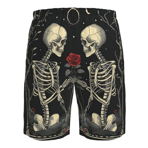 HOT ! Men's Quick Dry Swim Shorts Skeletons Red Rose Tarot Gothic Love Vintage Beach Trunks with Pockets