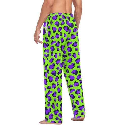 HOT ! Men's Pajama Pants Purple Leopard Print Pajama Pants for Men PJs Bottoms Drawstring Pockets Green Sleep Lounge Pants S