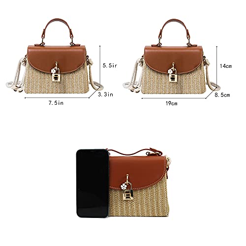 • Super Material: Made of straw woven, PU leather flap, pu leather top handle, and polyester lining; wear resistant and durable to use. Fashion Outlook: Lock deign, pu leather tassels, look fashionable and present-day, full of personality charm