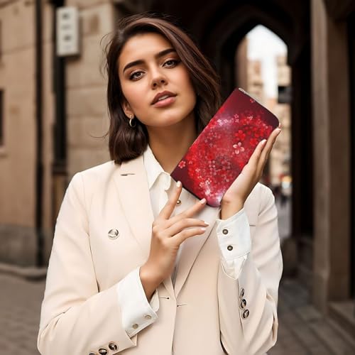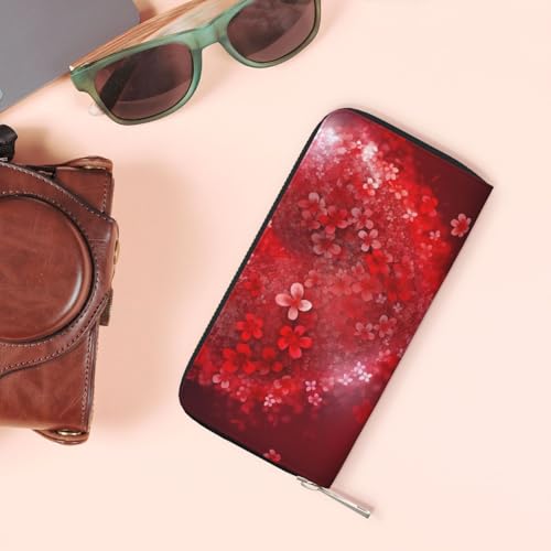 HOT ! Valentine'S Day Red Heart Flower Leather Wallet For Women Girl, Zip Around Credit Card Holder Long Pu Wallet Clutch Purse Waterproof Travel Handbag