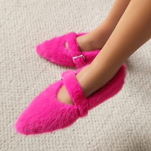 HOT ! Elbslutt Fur Ballet Flats for Women Pointed Toe Buckle Faux Shearling Mary Jane Flats Comfy Ballerina Flats Fashion Fuzzy Winter Cream Fur Flats Wedding Party
