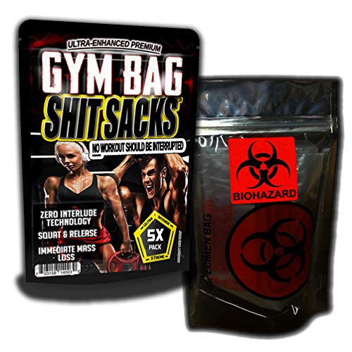 HOT ! Sh*t Sacks 5 Pack Funny Gym Bag for Trainers - Workout Gags for Men, Silly Stocking Stuffers for Health Nuts, Poop Sacks, Biohazard Bags, Bodybuilding Jokes