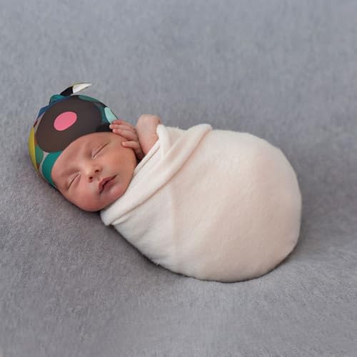 Newborn Baby Hat, Abstract Circle Painting Print gentle Top Knot Beanie Cap, Cute Baby Headwear for 0-6 Months Black