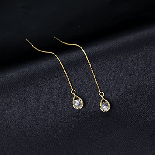 • Unique Design: Threader earrings will not hurt your ears, and they are very easy to insert into your ears. The dangle chain earrings inlaid with CZ droplet stone look so sparkling! These earrings are made for women or teenager.