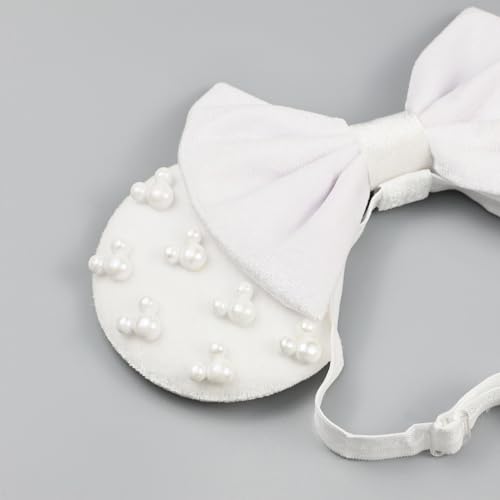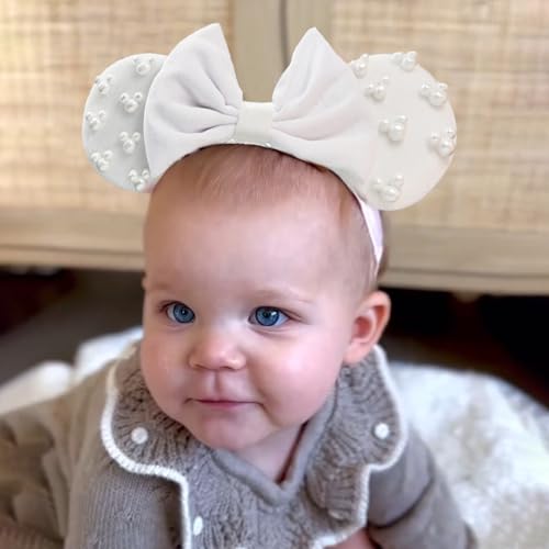 JIAHANG White Velvet Adjustable Mouse Ear Hair Bow Headband with Beadings, Fashion Bow Hairband Stand for Baby Girls Infant Toddlers 5