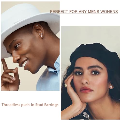 • This Threadless Stud Earrings are The cylindrical back does not hurt the skin, the unique push-in buckle design is easy to wear, you don't have to take it off when you shower, sleep, exercise, work, please follow the list video or picture to see how to wear it, and 10 butterfly buckles are prepared at the same time, don't worry lose it. two different styles of earring back collocation.Bring you a different experience.