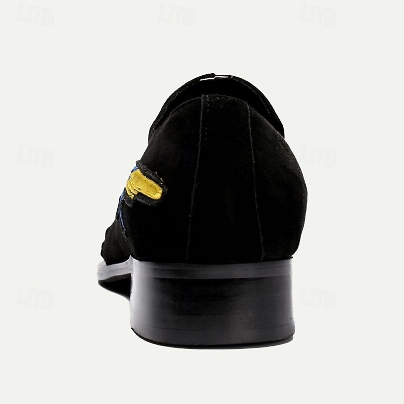 More information about Men's Embroidered Velvet Leather Loafers with Colorful Bird Design and Metal Toe – Luxury Slip-On Formal Shoes for Parties and Weddings