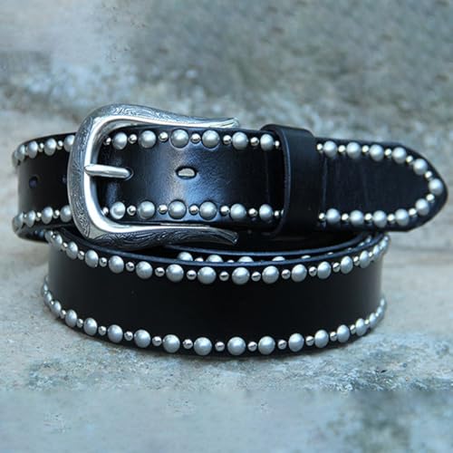 sought-after ! Women's Men's Studded Belt 2 Row Punk Rock Metal Round Rivet Waist Strap with Engraved Flower Buckle for complete Outfits