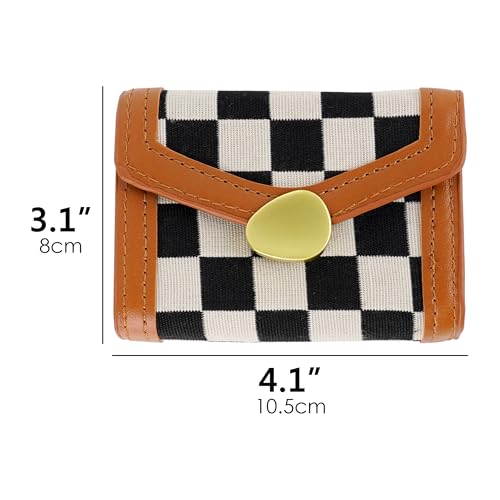 HOT ! Checkered Slim Card Holder for Women, RFID Blocking, 11-Slot Accordion Wallet with Snap Closure, Brown Accent