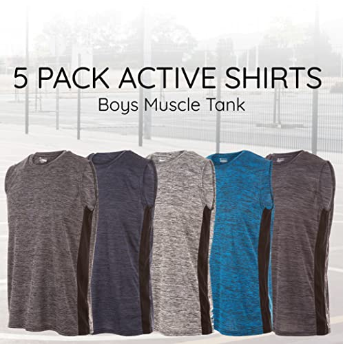 Essential Elements Boys Active Shirt - Quick-Dry Athletic Workout Training Stretch Crew Neck Muscle Tank Top 5 Pack 5