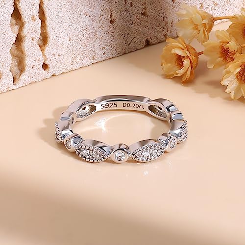 Ladylike Moissanite Wedding Band Milgrain Marquise Half Eternity Ring 925 Sterling Silver Band D Color VVS1 Lab Created Half Eternity Stackable Rings for Women 6