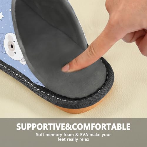 JUNZAN Cute Bears Blue Memory Foam Slippers for Women Men House Slippers for Bedroom Indoor 7