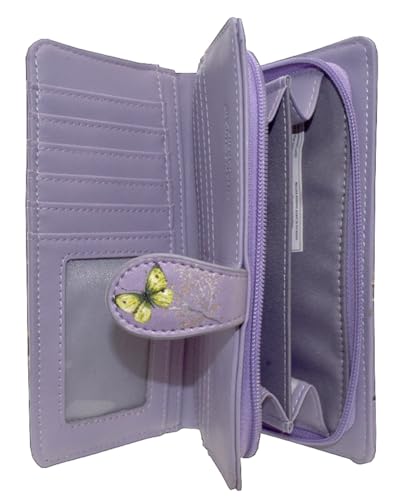 Shag Wear Floral Butterflies Large Insect Wallet for Women and Teen Girls Vegan Faux Leather Purple 7" 7